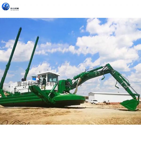 電話:15610293649水王挖泥船在江蘇現(xiàn)場 兩棲式挖泥船設(shè)計緊湊,集反鏟疏浚作業(yè)、絞吸疏浚作業(yè)、打樁作業(yè)能力于一身。適于在超淺水域、河湖、渠道、池塘及工業(yè)沉淀池進(jìn)行工作
