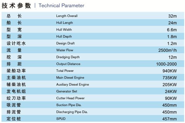 是在疏灘工程中運用較廣泛的一種船舶,它是利用吸水管前端圍繞吸水管裝設旋轉絞頭裝置,將河底泥沙進行切割和攪動,再經吸泥管將絞起的泥沙物料,借助強大的泵力,輸送到泥沙物料堆積場,它的挖泥、運泥、卸泥等工作過程,可以一次連續完成,它是一種效率高、成本較低的挖泥船,是良好的水下挖掘機械。